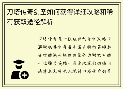 刀塔传奇剑圣如何获得详细攻略和稀有获取途径解析