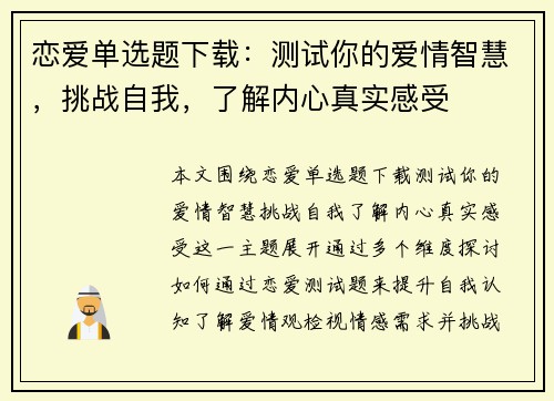恋爱单选题下载:测试你的爱情智慧,挑战自我,了解内心真实感受